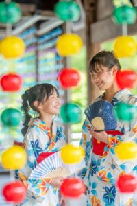 仲良し姉妹の2人。静岡県袋井市にある法多山に飾られた色とりどりの風鈴を見てつい笑顔がこぼれてしまった初夏のひととき。