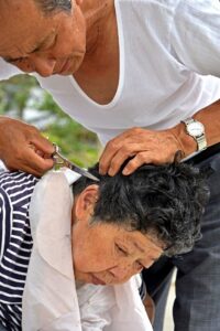 以前、ご自宅敷地内で、旦那さんが奥さんの散髪をしていられるのを見ました。