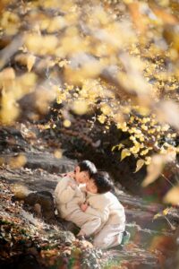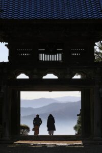 山門がちょうど額縁になって、お二人の姿が絵画の様に見えます。