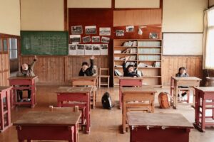 カップルの高校生の後ろ姿に二人の絆が感じられました。